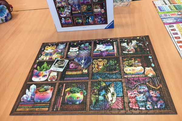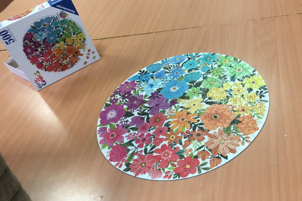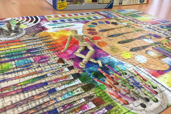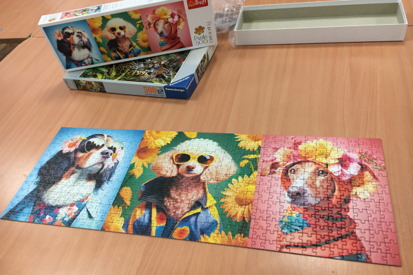 Minden játékos hozott magával a Puzzle-napra egy 500 darabos kirakót, amit kikészített az asztalra.