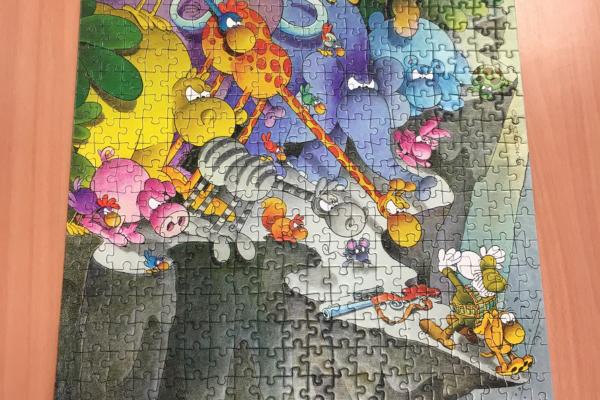 Volt közös játék, ahol sokféle puzzle-t raktunk ki – egy kis csavarral.